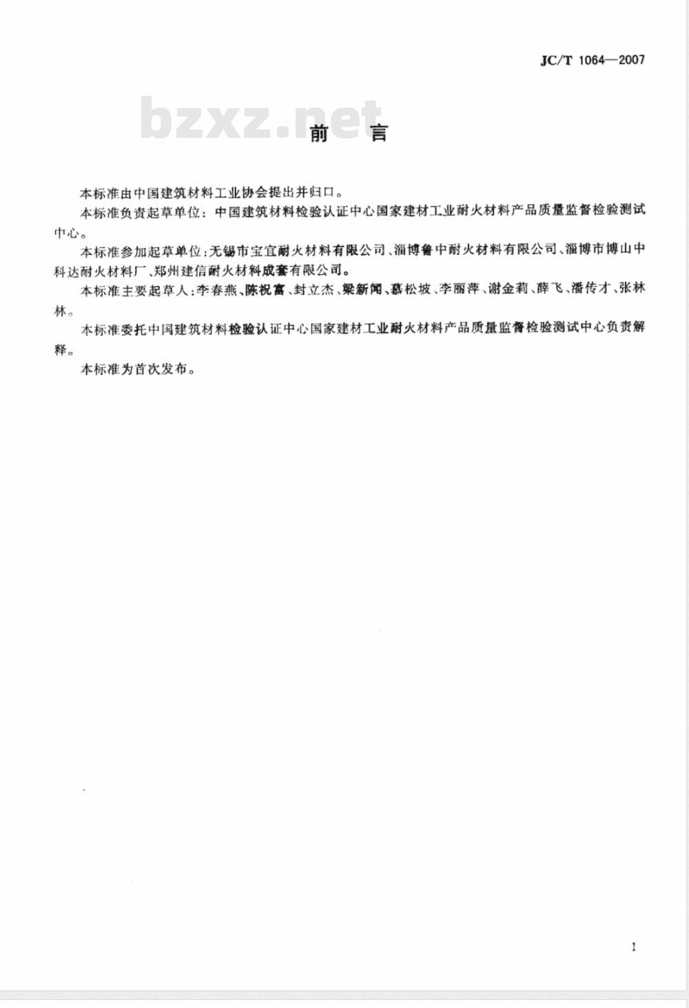 本标准负责起草单位:中国建筑材料检验认证中心国家建材工业耐火材料产品质量监督检验测试中心。