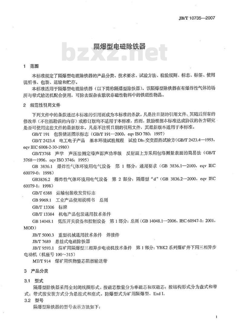 - JB/T 10735-2007 隔爆型电磁除铁器