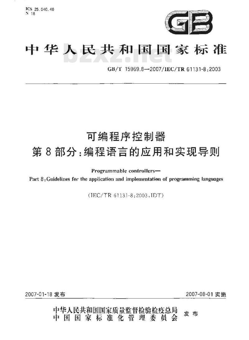- GB/T 15969.8-2007 可编程序控制器 第8部分:编程语言的应用和实现导则