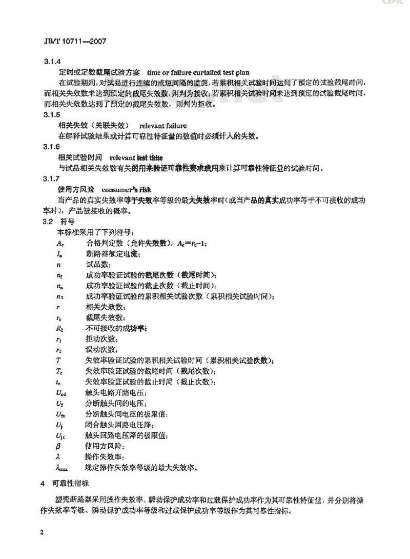 GB/T5080.7设备可靠性试验恒定失效率假设下的失效率与平均无故障时间的验证试验方案(GB/T5080.7—-1986.idtIEC60605-7:1978)GB/T14048.1--2006低压开关设备和控制设备总则(IEC60947-1:2001,MOD)GB14048.2—2001低压开关设备和控制设备低压断路器(idtIEC60947-2:1997)3术语和定义、符号