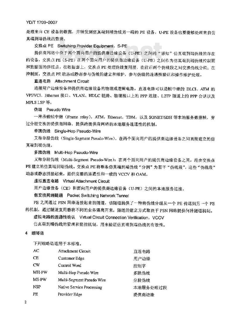 - YD/T 1709-2007 仿真端到端伪线技术要求