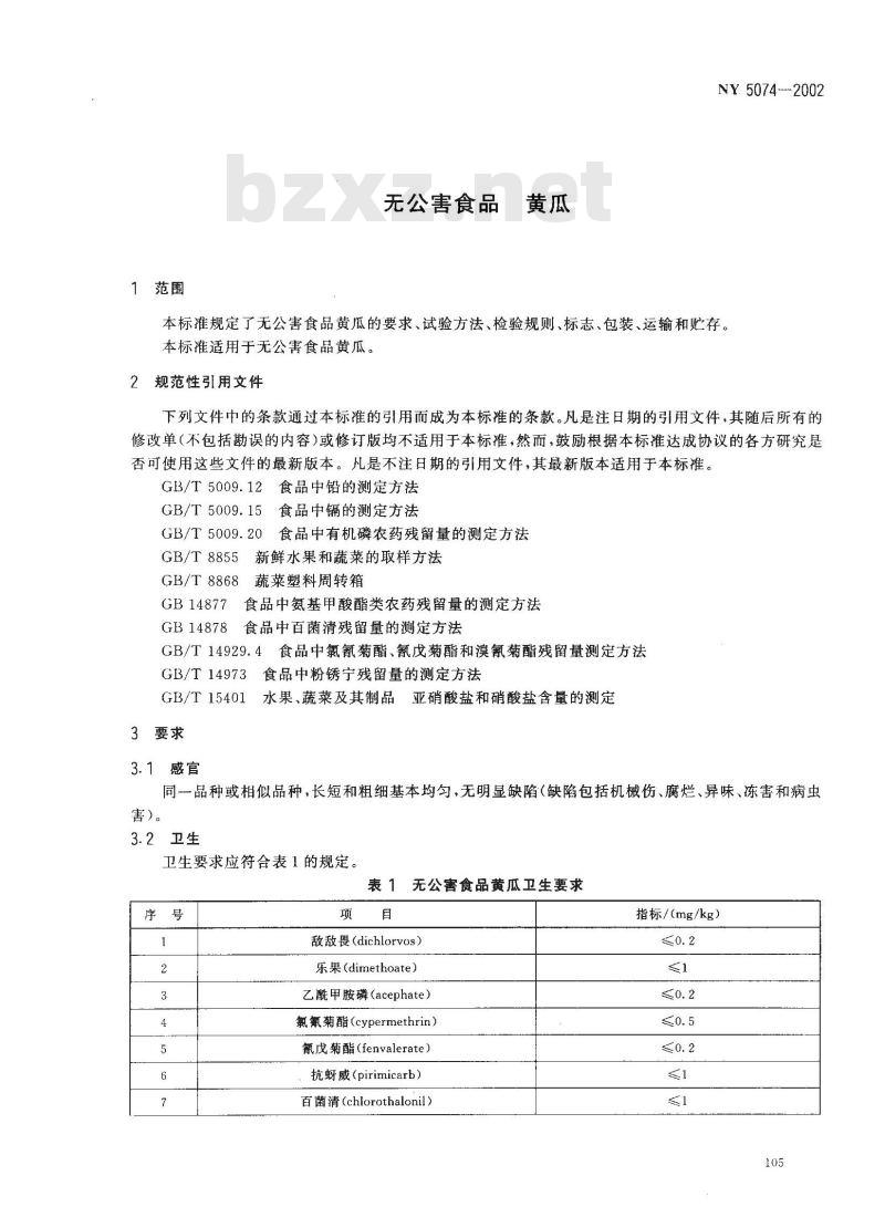 本标准规定了无公害食品黄瓜的要求、试验方法、检验规则、标志、包装、运输和贮存。本标准适用于无公害食品黄瓜。2规范性引用文件