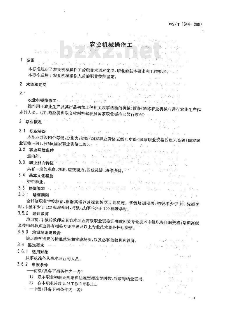 本标准规定了农业机械操作工的职业术语和定义、职业的基本要求和工作要求:本标准适用于农业机械操作人员的职业技能鉴定,2术语和定义