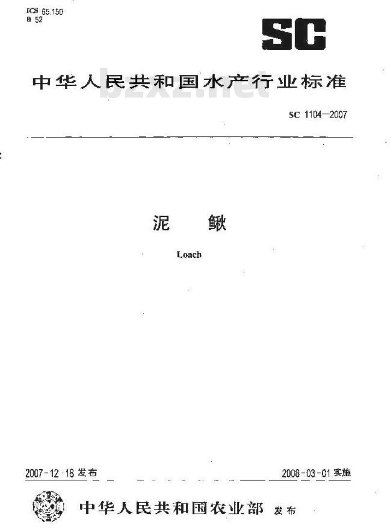 - SC 1104-2007 泥鳅