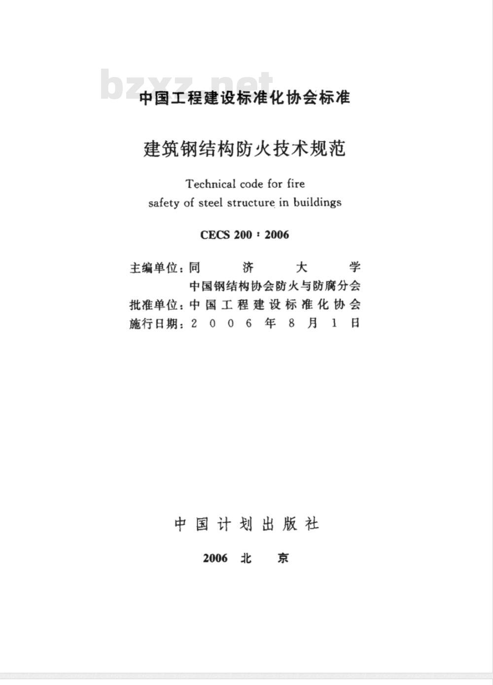 为防止和减小建筑钢结构的火灾危害,保护人身和财产安全,经济、合理地进行钢结构抗火设计和采取防火保护措施,制定本规范。本规范适用于新建、扩建和改建的建筑钢结构和组合结构的抗火设计和防火保护。 CECS 200-2006 建筑钢结构防火技术规范 CECS200-2006