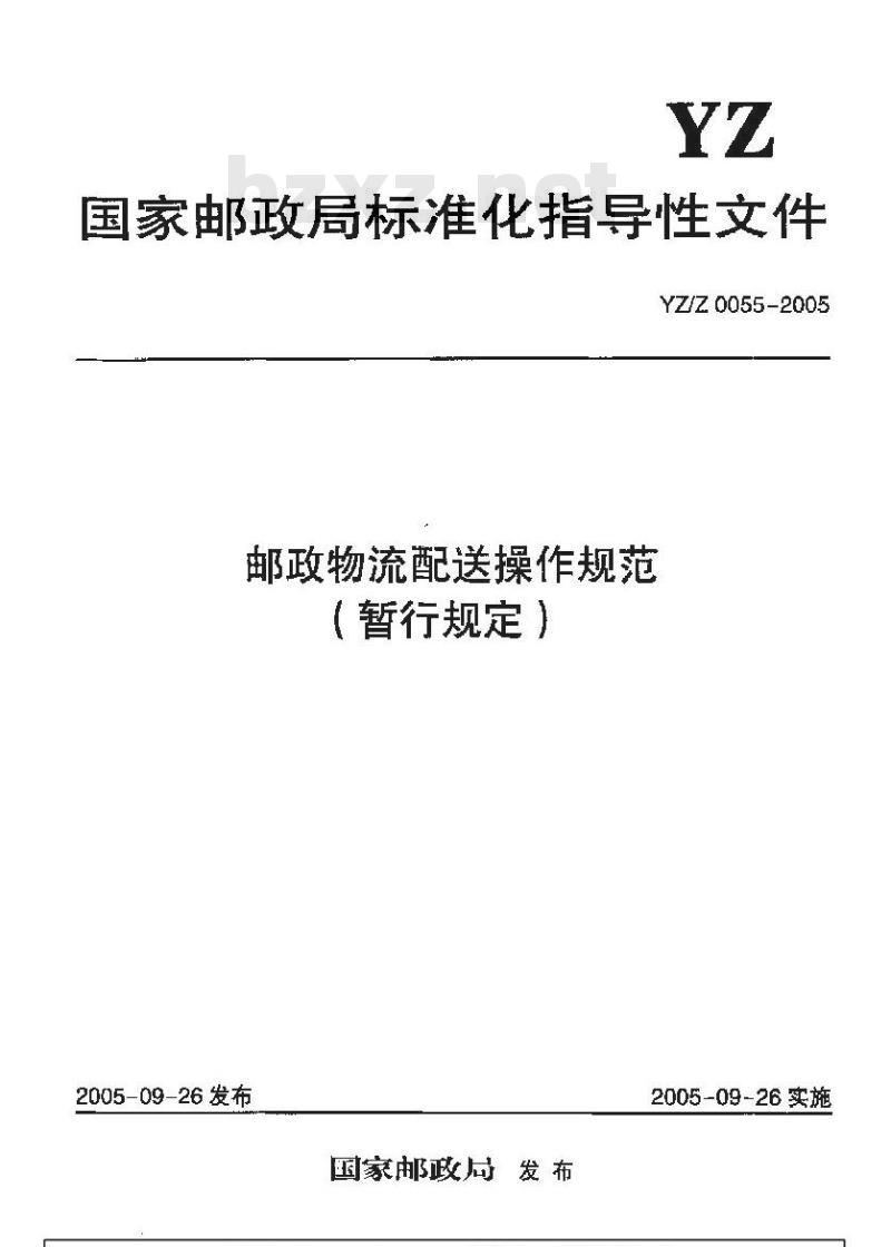 - YZ/Z 0055-2005 邮政物流配送操作规范(暂行规定)