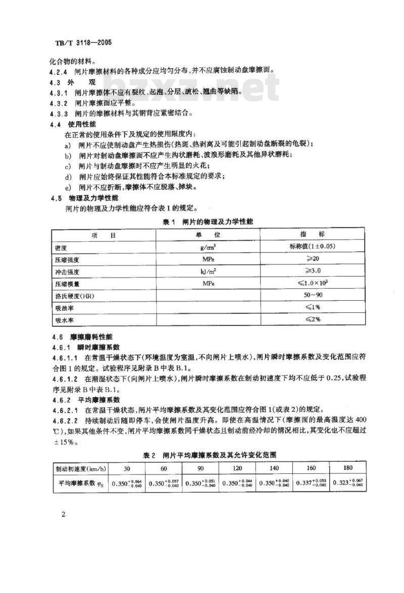 闸片应始终保证其性能符合本标准规定的要求;e)闸片不应折断,摩擦体不应脱落、掉块。4.5物理及力学性能