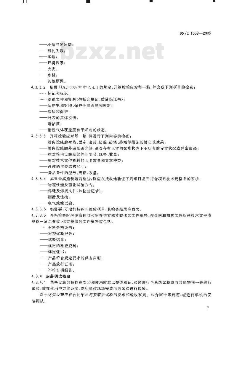 零部件和组件已按规定主要求进行了清洗、保护和标识:如可能,对某些重要特注行抽检或复验。4.3.1.5装运前检验的结果不能代替到货时的检验。实施装运前检的设施仍应行到货后的检验。4.3.2口岸检验