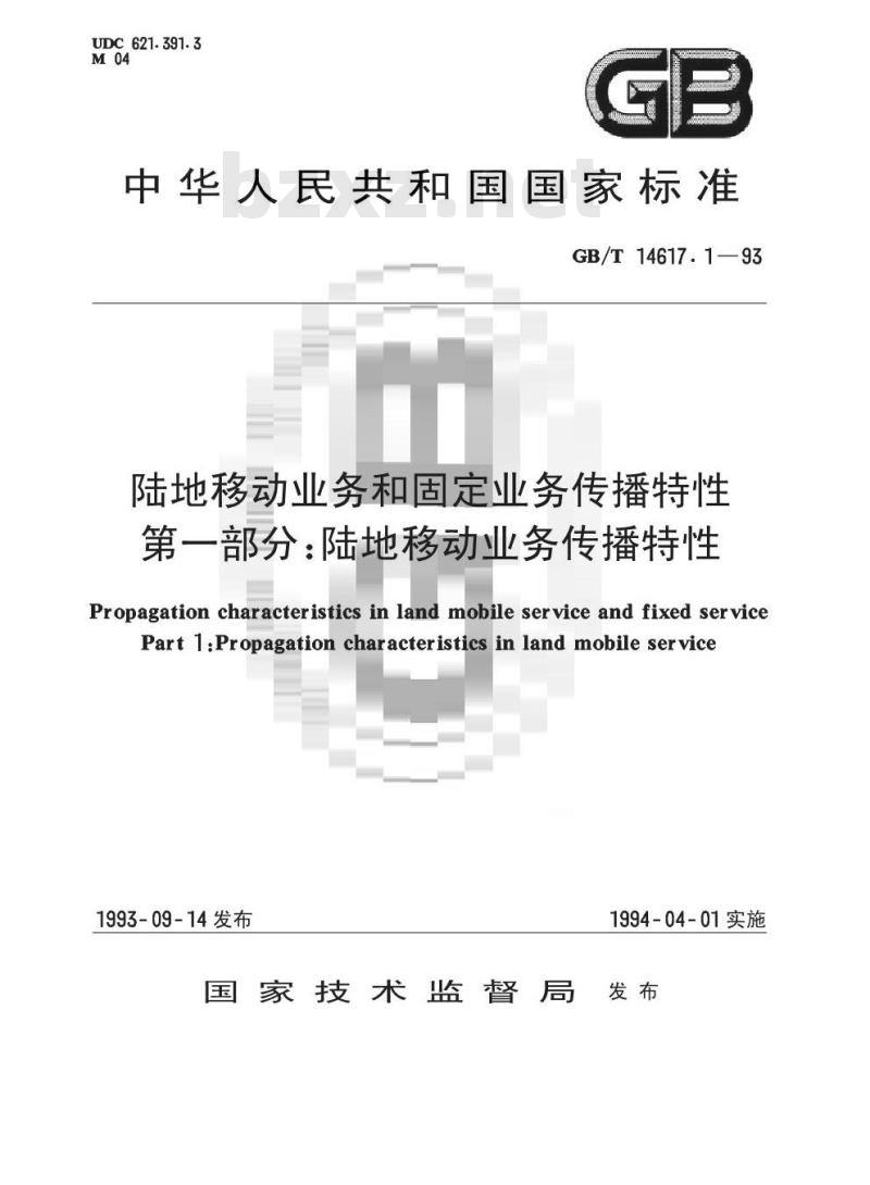 - GB/T 14617.1-1993 陆地移动业务和固定业务传播特性 第一部分:陆地移动业务传播特性