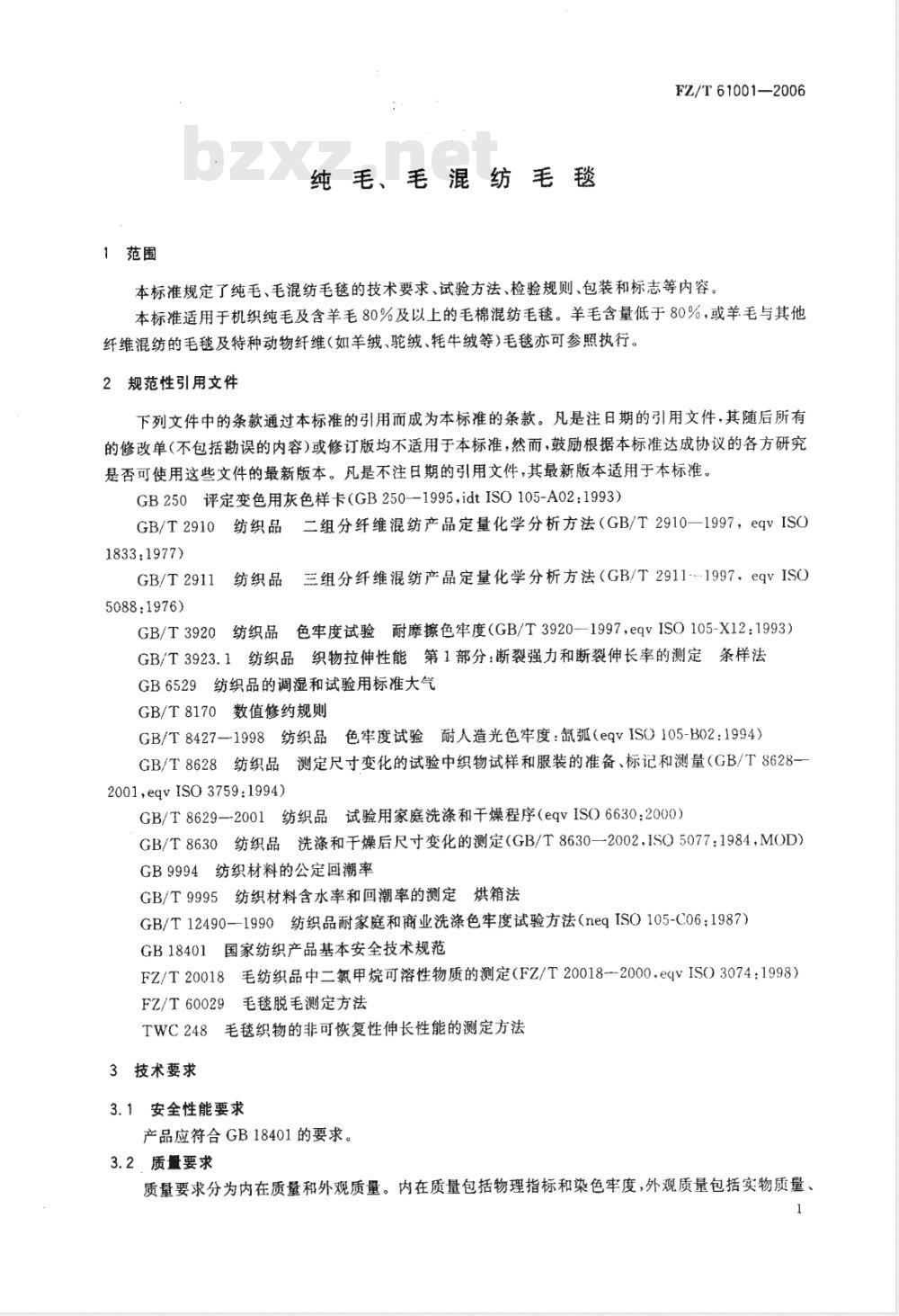 - FZ/T 61001-2006 纯毛 毛混纺毛毯