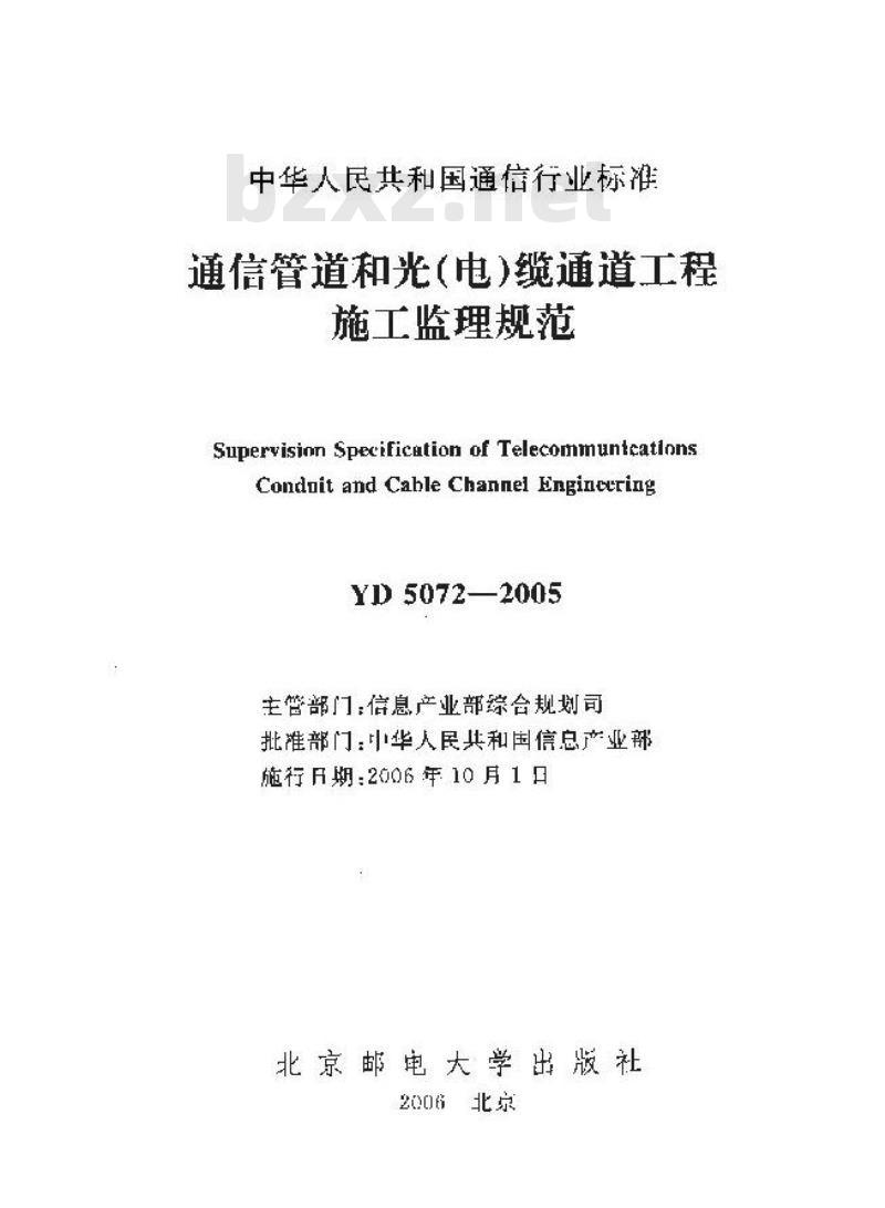 Supervisinn Specification of TelecommuntcationsConduit and Cahle Channei EnginccringYD5072—2005