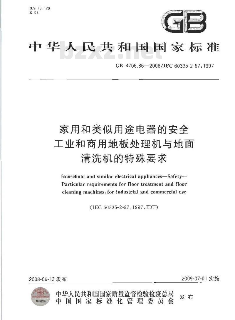 - GB 4706.86-2008 家用和类似用途电器的安全 工业和商用地板处理机与地面清洗机的特殊要求