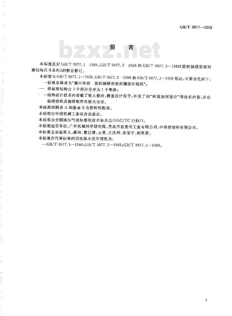 - GB/T 9877-2008 液压传动 旋转轴唇形密封圈设计规范