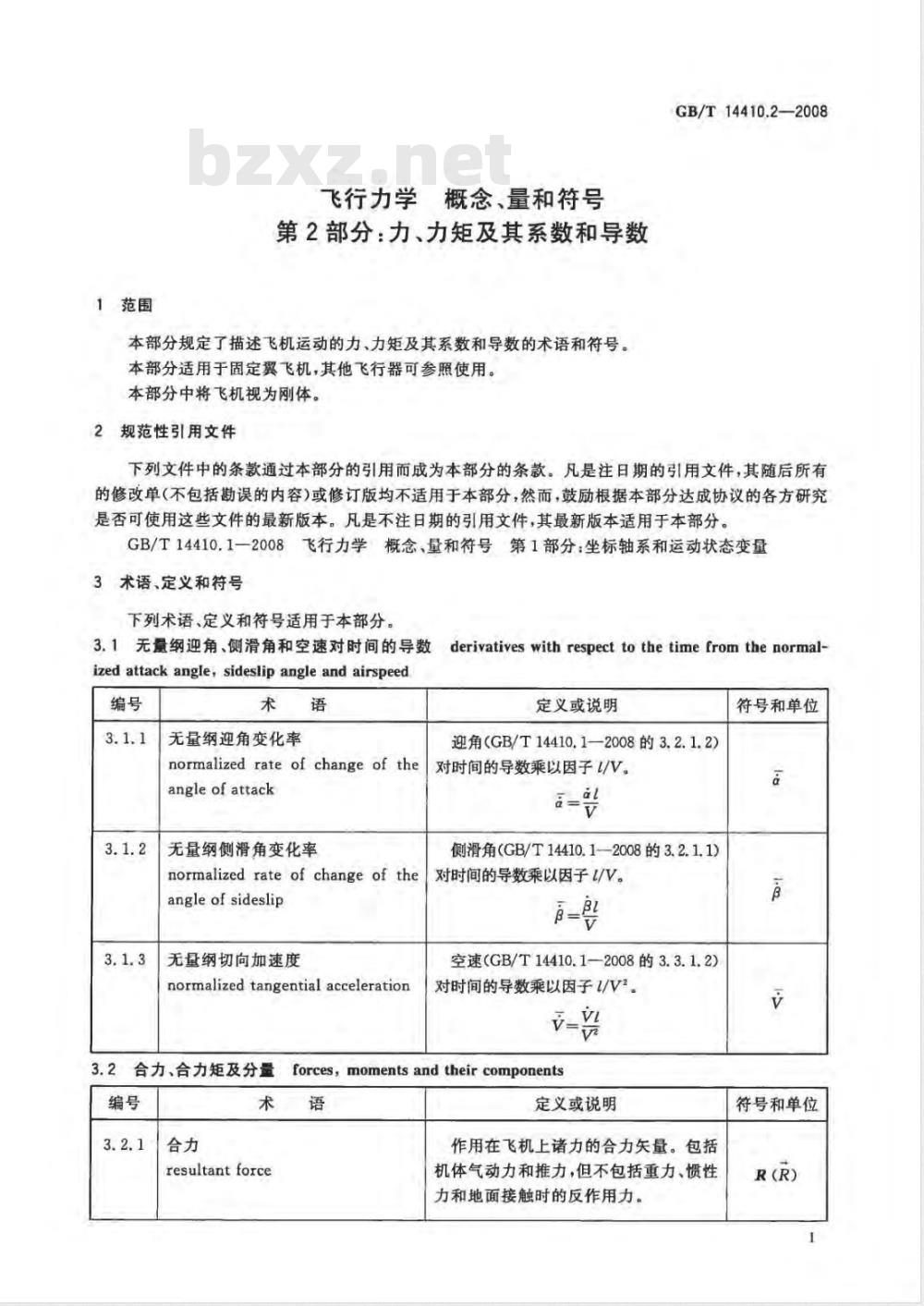 - GB/T 14410.2-2008 飞行力学 概念、量和符号 第2部分:力、力矩及其系数和导数