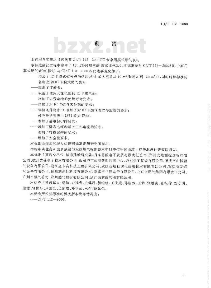 - CJ/T 112-2008 IC卡膜式燃气表