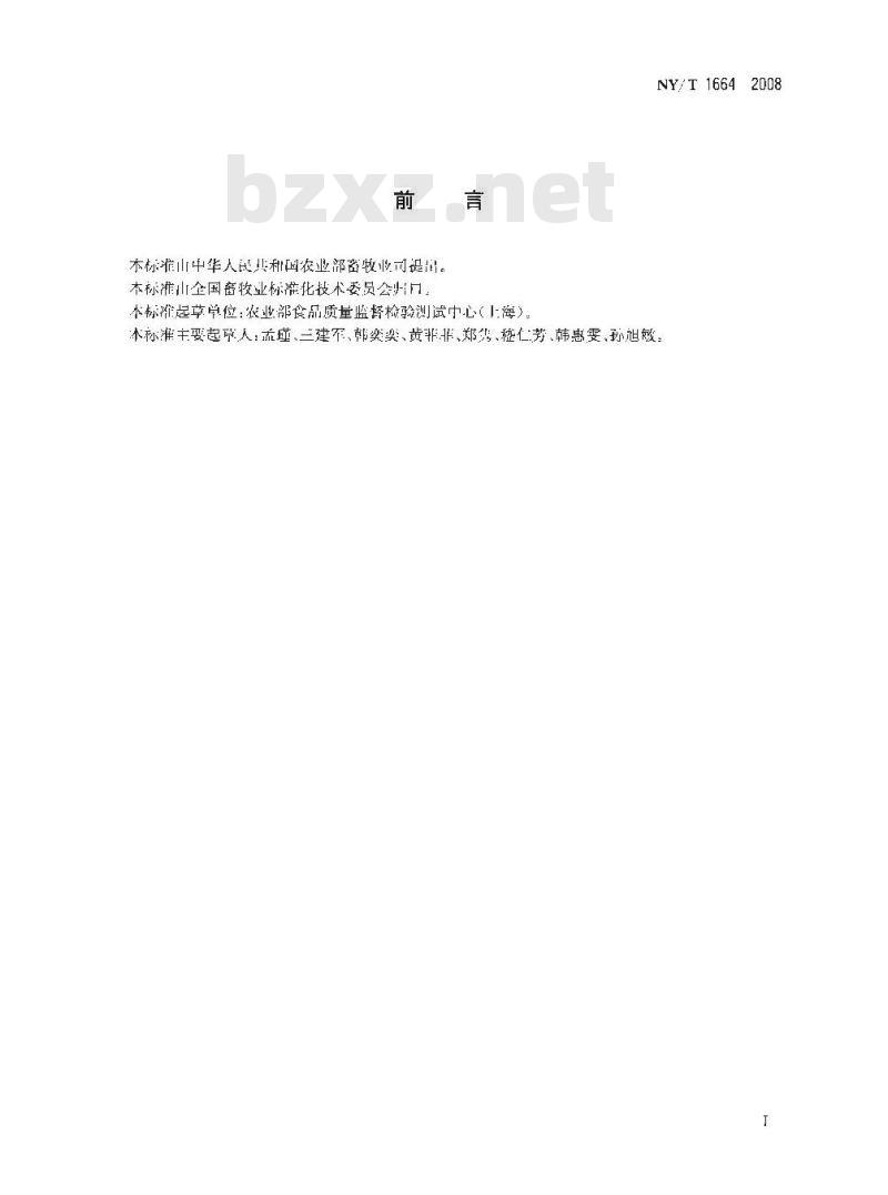 本标雅山中华人民共和国农业部畜牧世司铝昆。本标准山全国畜牧业标准化技术委员会州口本标滩起草单位:农业部食品质量监督检验测试中心(1海)NY/T16642008