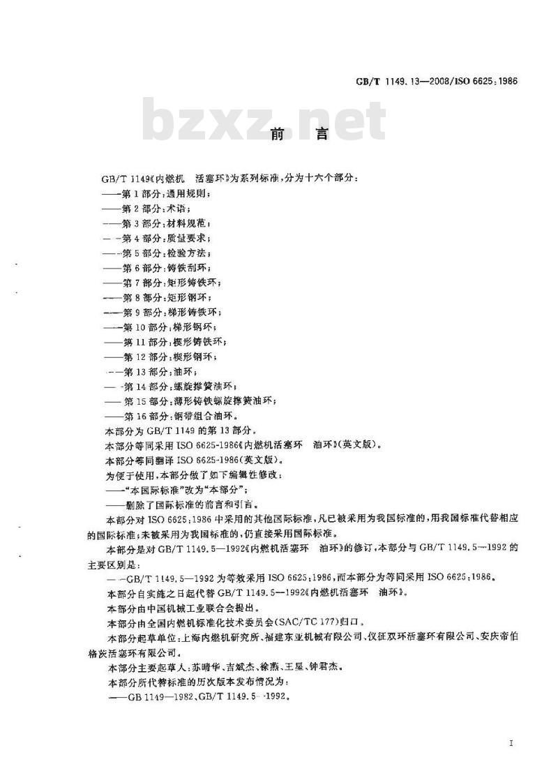 GB/T 1149. 13—2008/1SO 6625: 1986GB/T1149《内燃机活塞环》为系列标准,分为十六个部分:-第1部分,通用规则;