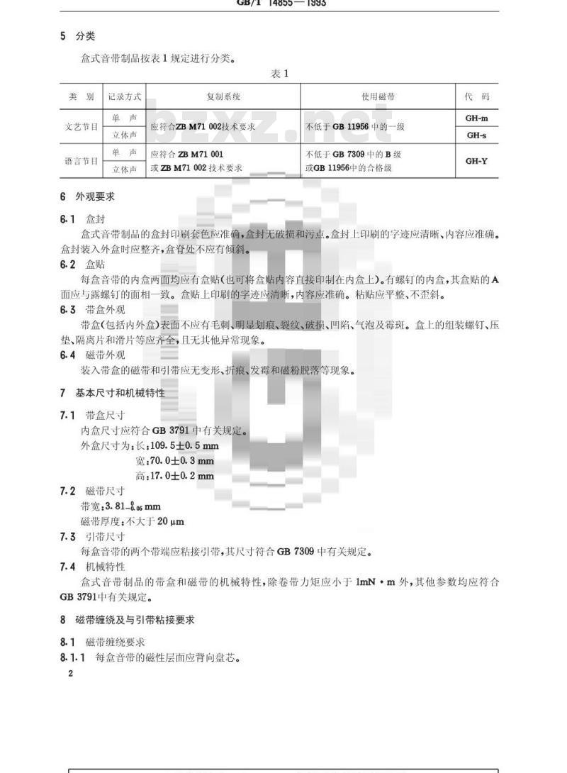 - GB/T 14855-1993 盒式音带制品质量总技术规范