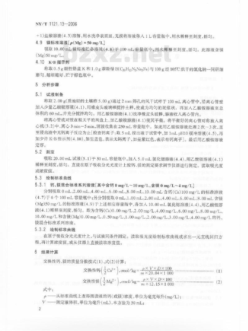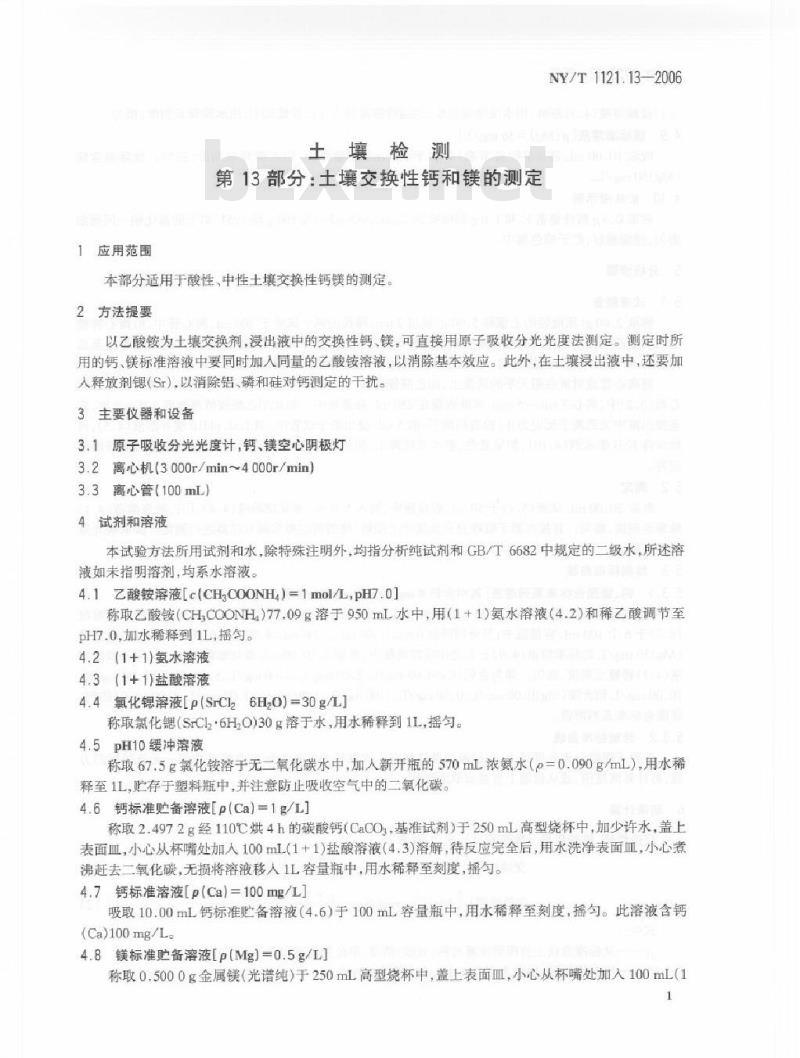 - NY/T 1121.13-2006 土壤检测 第13部分:土壤交换性钙和镁的测定