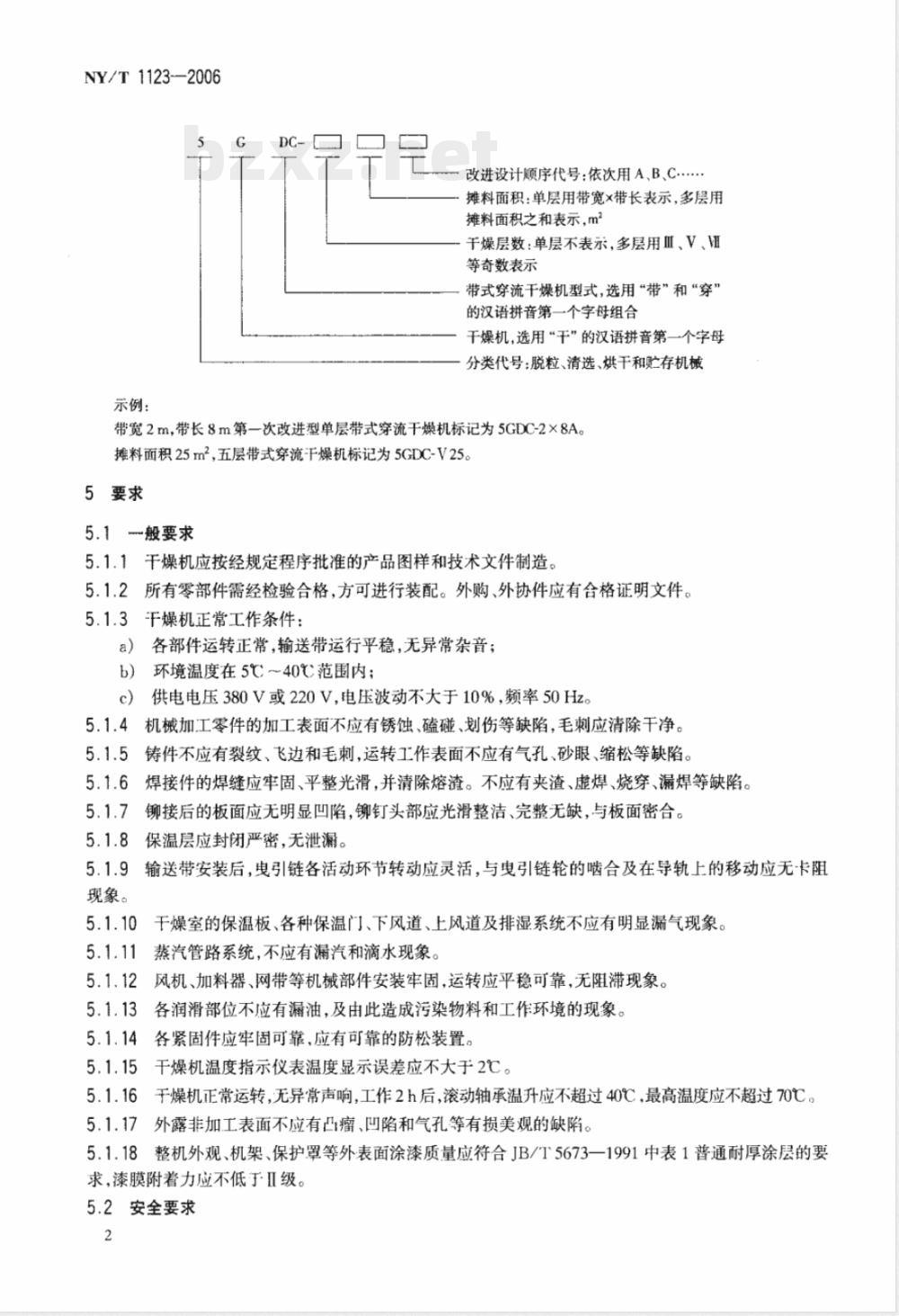 5.2.1干燥机的摊料网带应采用符合GB16798规定的材料制造。5.2.2干燥机中用于保温的部件,选用的保温材料应符合食品卫生要求。NY/T 1123-2006