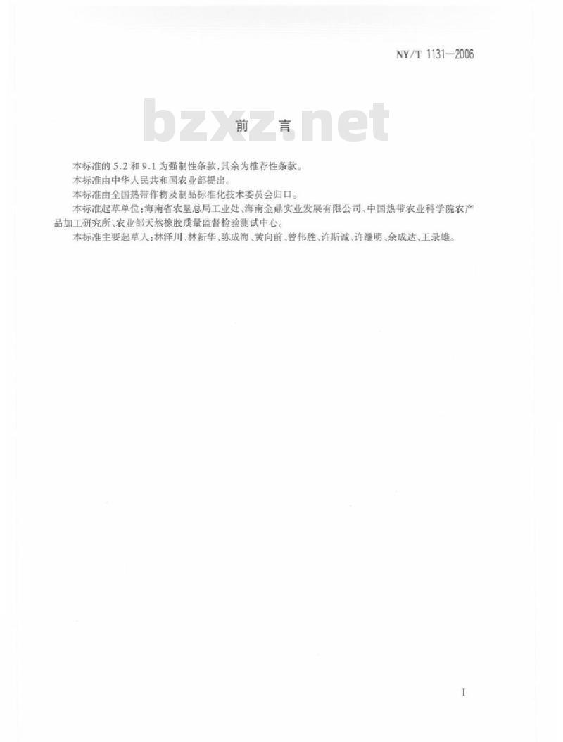 本标准起草单位:海南省农垦总局工业处、海南金鼎实业发展有限公司、中国热带农业科学院农产品加工研究所、农业部天然橡胶质量监督检验测试中心。本标准主要起草人:林泽川、林新华、陈成海、黄向前、曾伟胜、许斯诚、许继明、余成达、王录雄。I