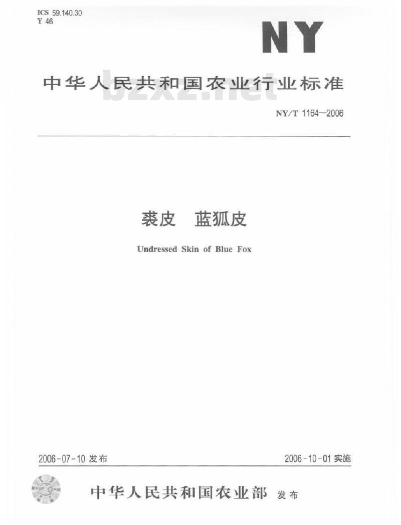 - NY/T 1164-2006 裘皮 蓝狐皮