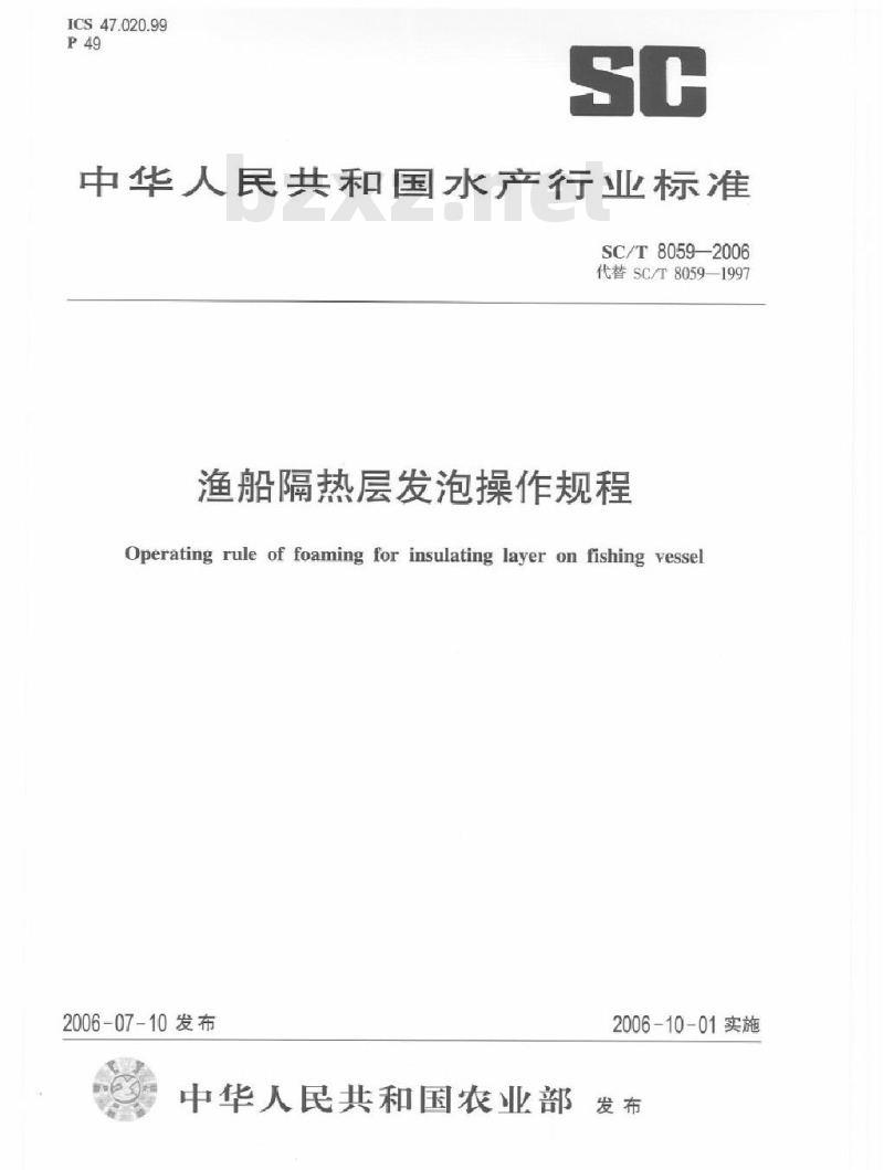 - SC/T 8059-2006 渔船隔热层发泡操作规程