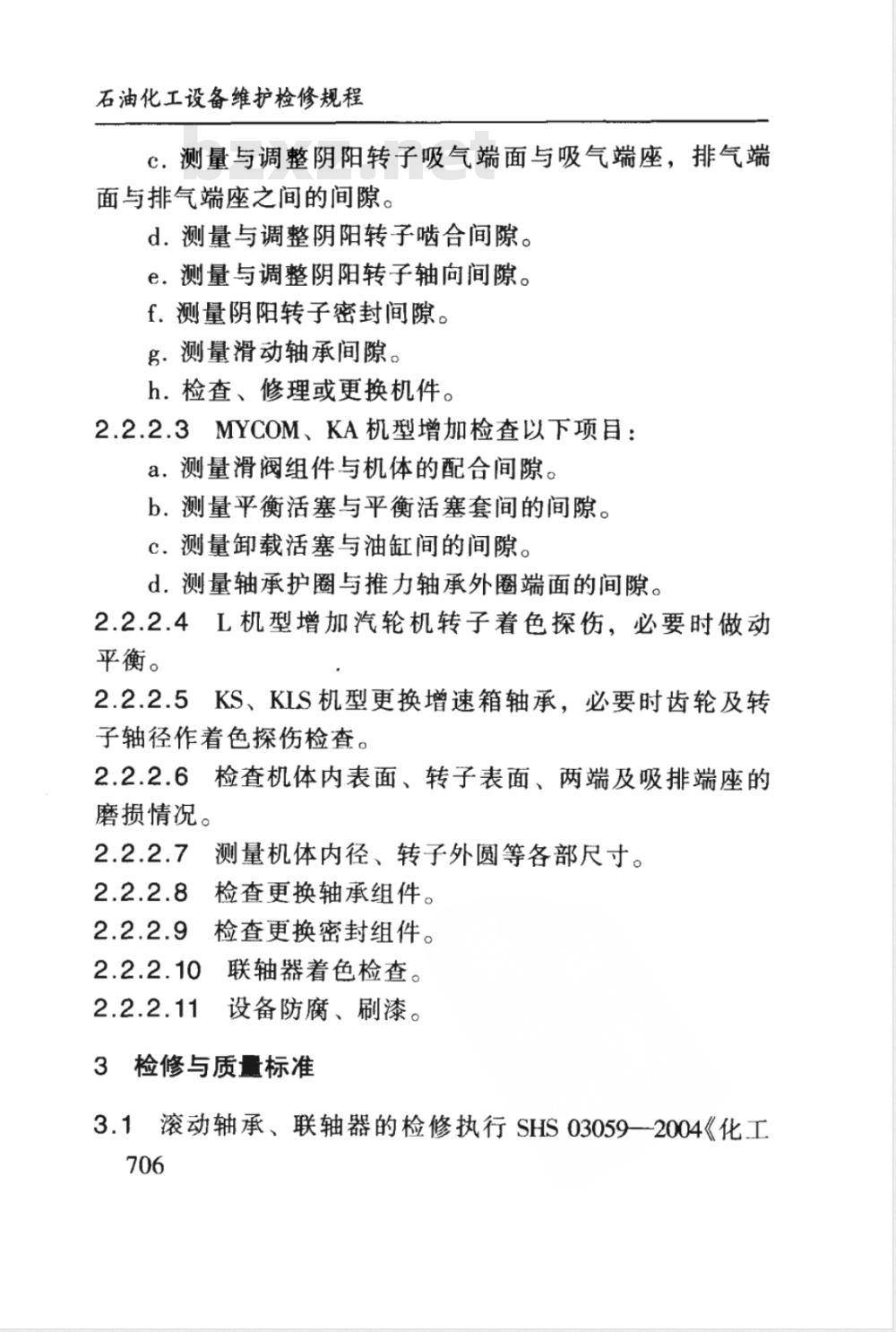 3.1滚动轴承、联轴器的检修执行SHS03059一2004《化工706