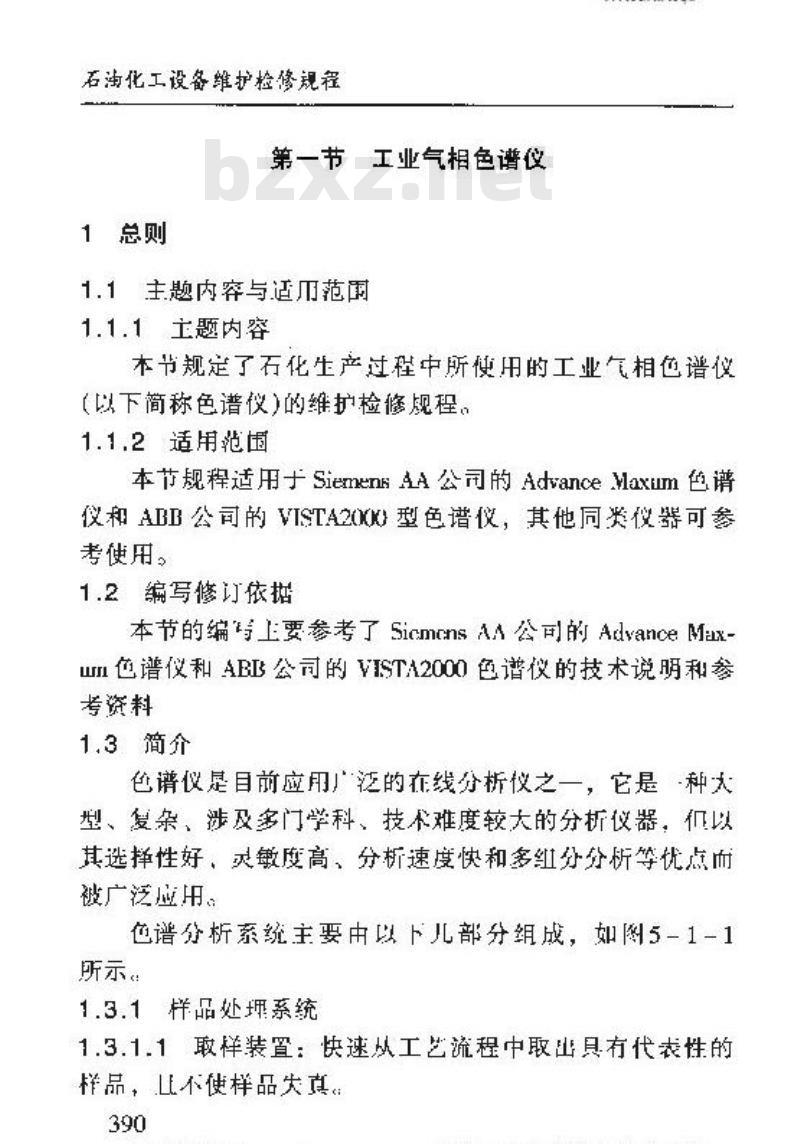 本节规定了石化生产过程中所使用的工业气相色谱仪(以下简称色谱仪)的维护检修规程。1.1.2适用范围