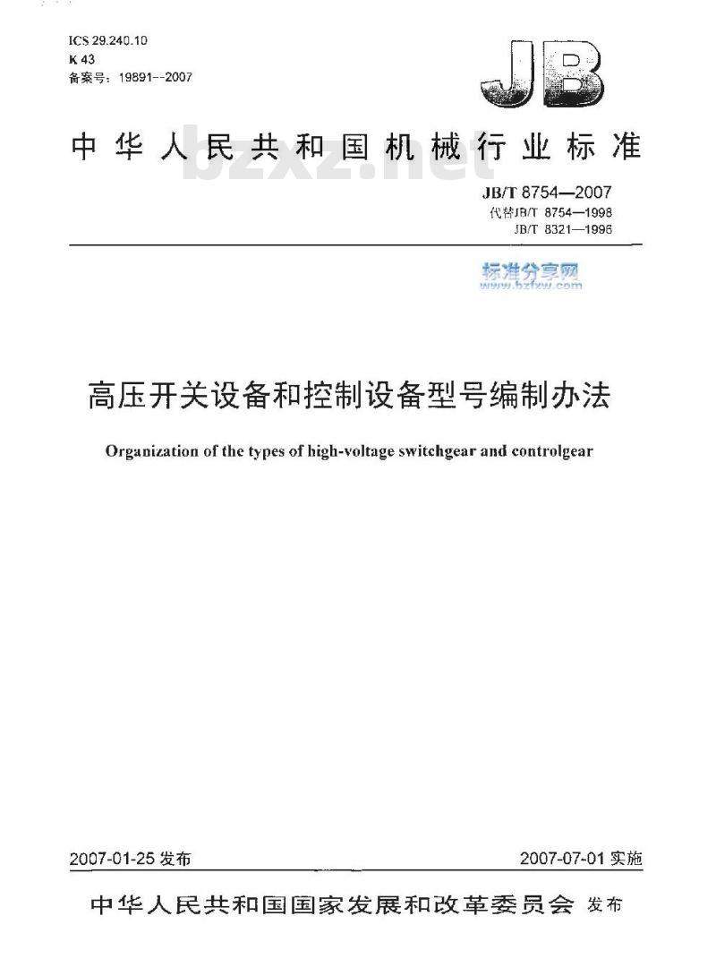 - JB/T 8754-2007 高压开关设备和控制设备型号编制办法
