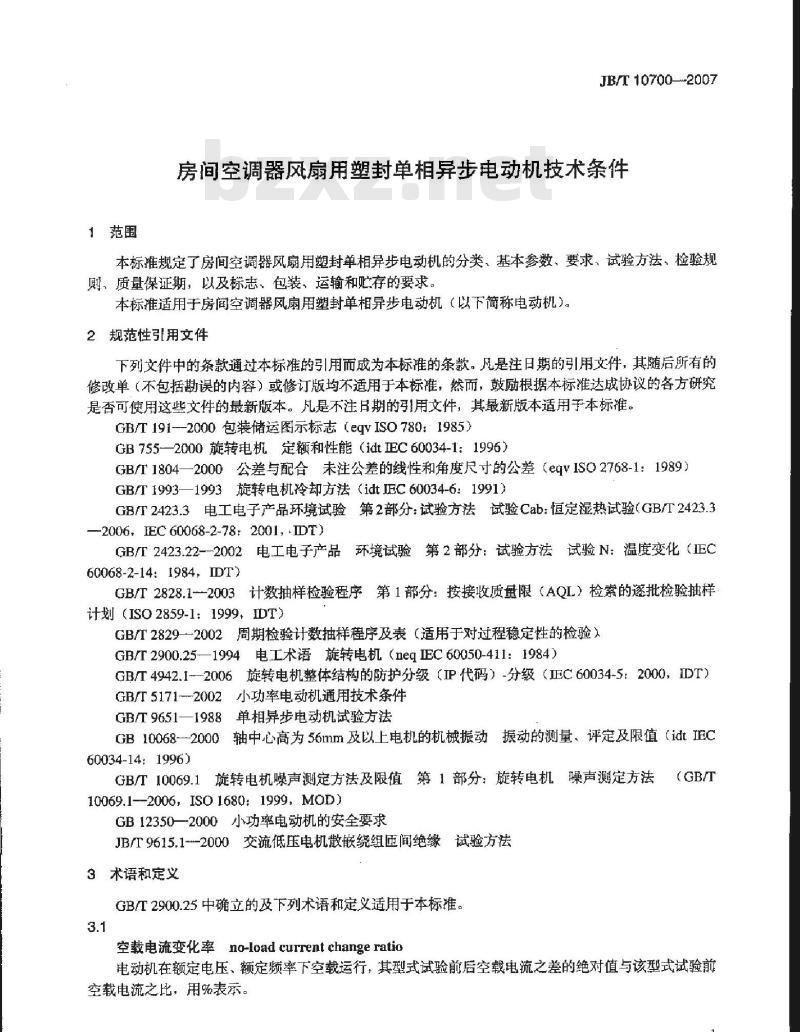- JB/T 10700-2007 房间空调器风扇用塑封单相异步电动机技术条件
