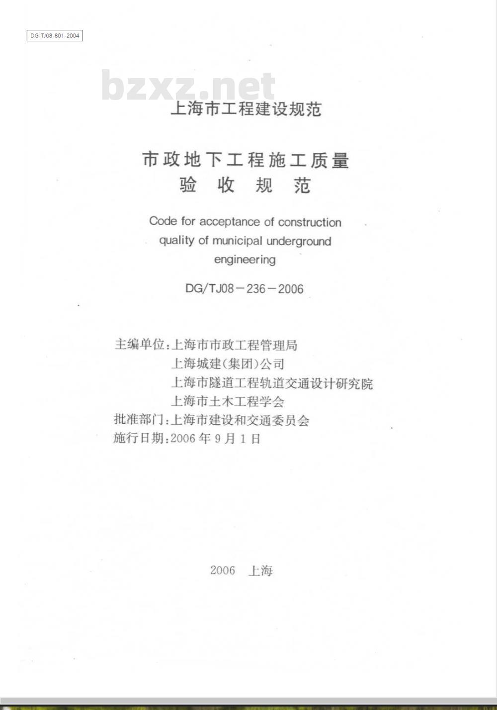 - DG/TJ 08-236-2006 市政地下工程施工质量验收规范