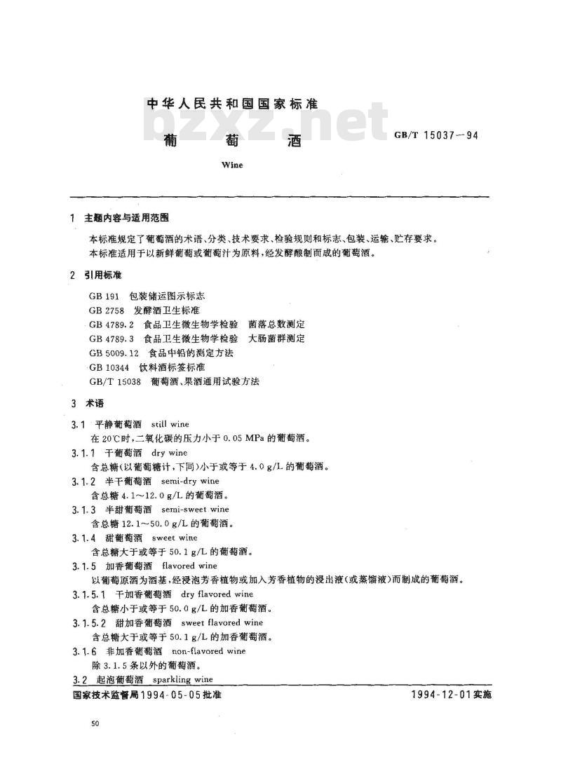 本标准规定了葡酒的术语、分类、技术要求、检验规则和标志、包装、运输、贮存要求。本标准适用于以新鲜葡萄或葡萄汁为原料,经发酵酿制而成的葡萄酒。2引用标准