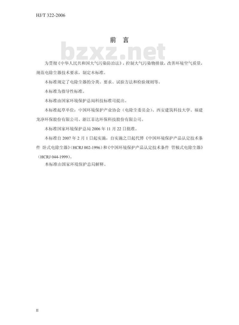 - HJ/T 322-2006 环境保护产品技术要求 电除尘器