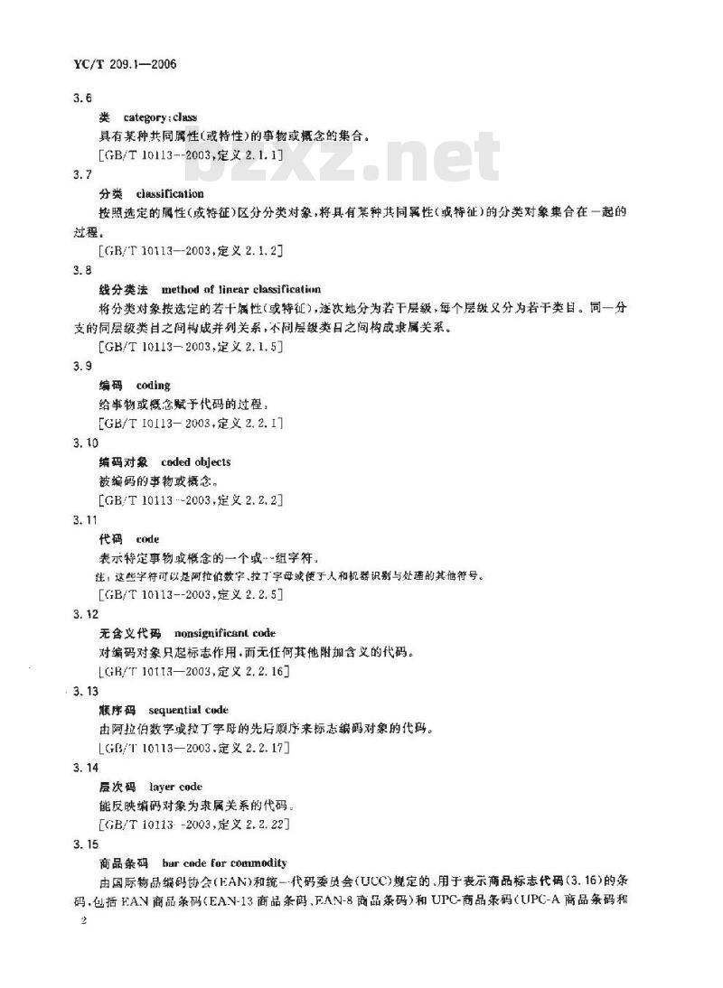 下列文件中的条款通过YC/T209的本部分的引用而成为本部分的条款。凡是注月期的引用文件,其随后所有的修改单(不包括勘误的内容)或修订版均不适用于本部分,然而,鼓励极据本部分达成协议的各方研究是否可使用这些文件的最新版本。GB/T10113--2003分类与编码通用术语GB12904-2003商品条码
