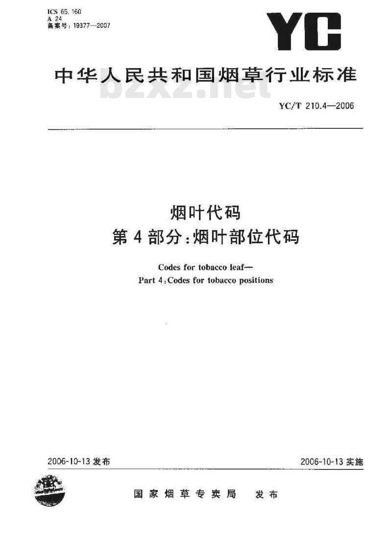 - YC/T 210.4-2006 烟叶代码 第4部分:烟叶部位代码