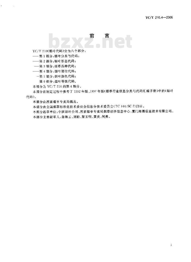 YC/T210%烟叶代码分为六个部分:第1部分:烟叶分类与代码;
