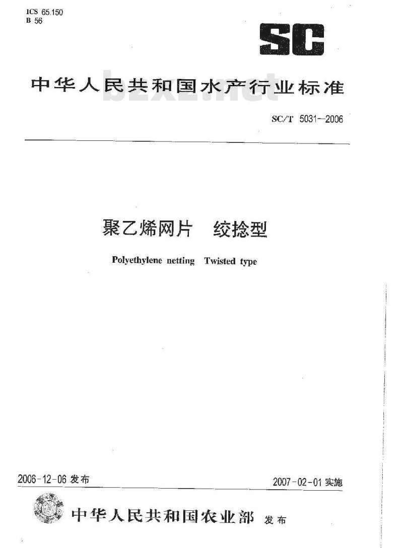 - SC/T 5031-2006 聚乙烯网片 绞捻型