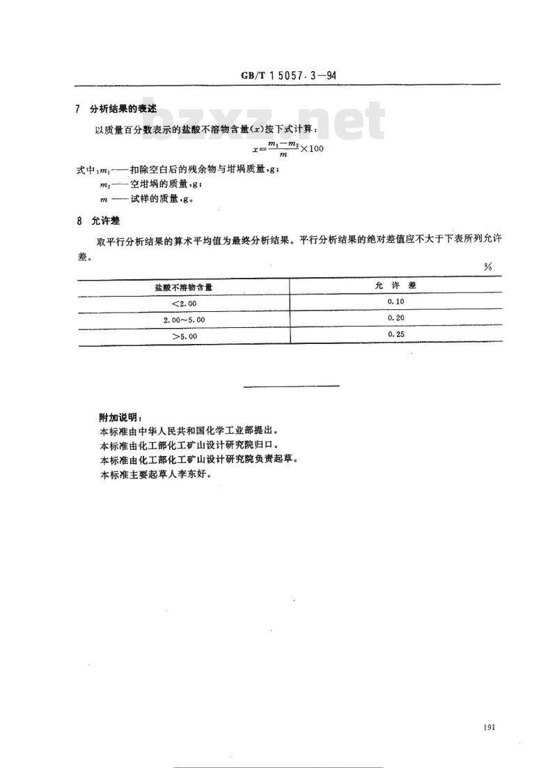 - GB/T 15057.3-1994 化工用石灰石中盐酸不溶物含量的测定 重量法