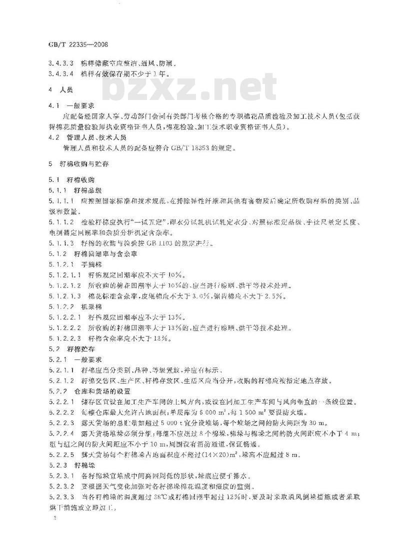 5.1.2.2.1籽将规定回潮率应不大于13%。5.1.2.2.2所收购的举稿国率人下13%的,应光进行惊、烘平等技术处理5. 1.2.2.3籽棉含杂率应不大丁13%。5.2籽棉贮存