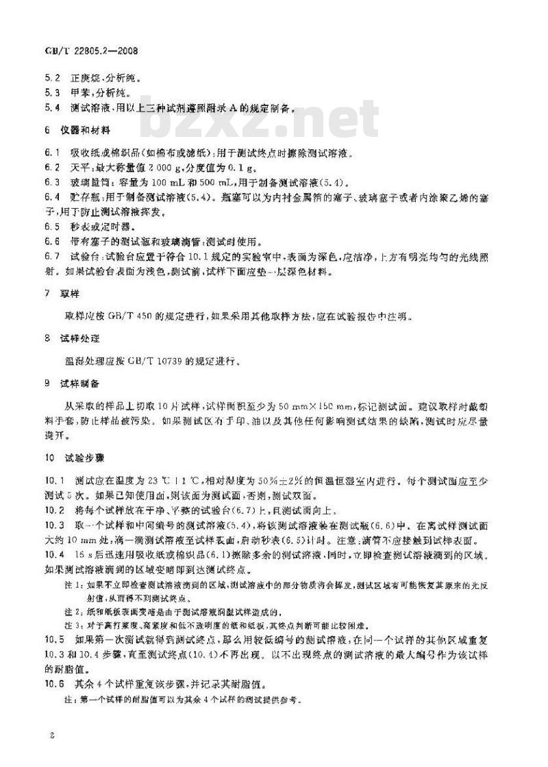 - GB/T 22805.2-2008 纸和纸板 耐脂度的测定 第2部分:表面排斥法
