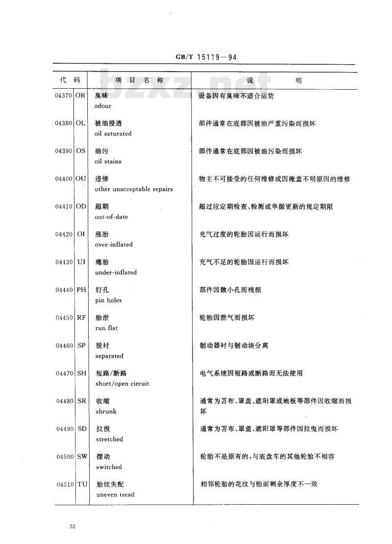- GB/T 15119-1994 集装箱常用残损代码