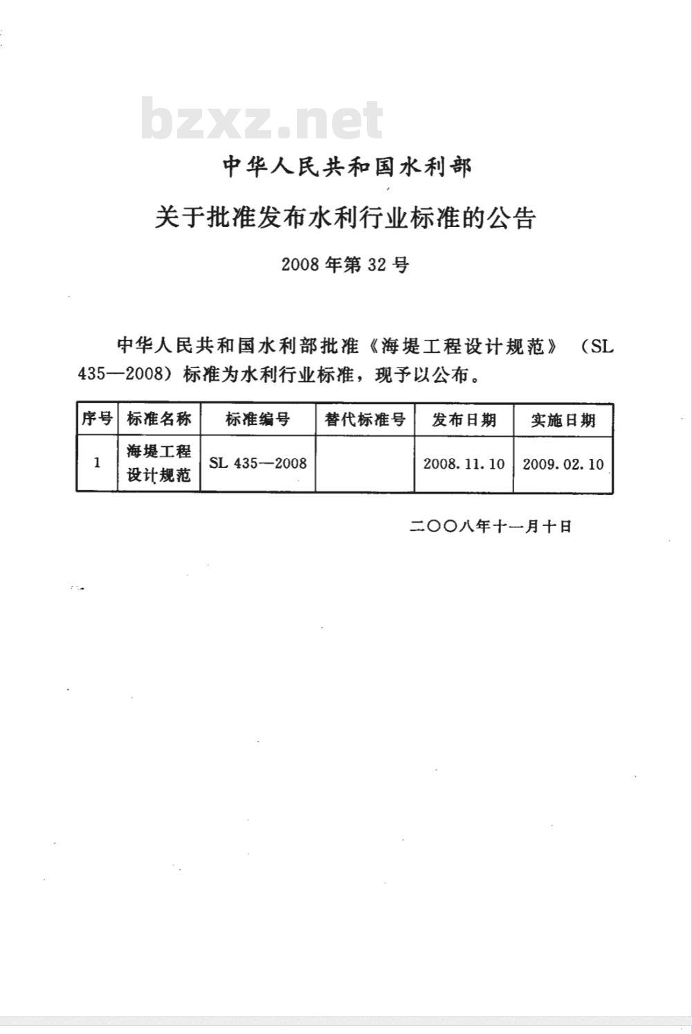中华人民共和国水利部批准《海堤工程设计规范》435一2008)标准为水利行业标准,现予以公布。序号