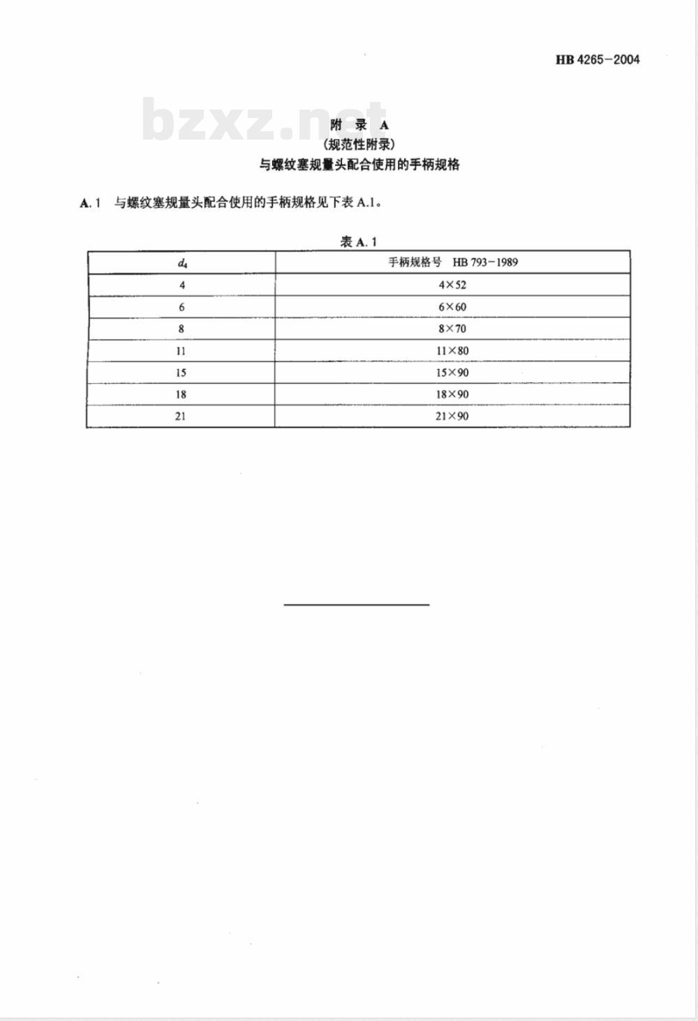 与螺纹塞规量头配合使用的手柄规格见下表A.1。表A.1