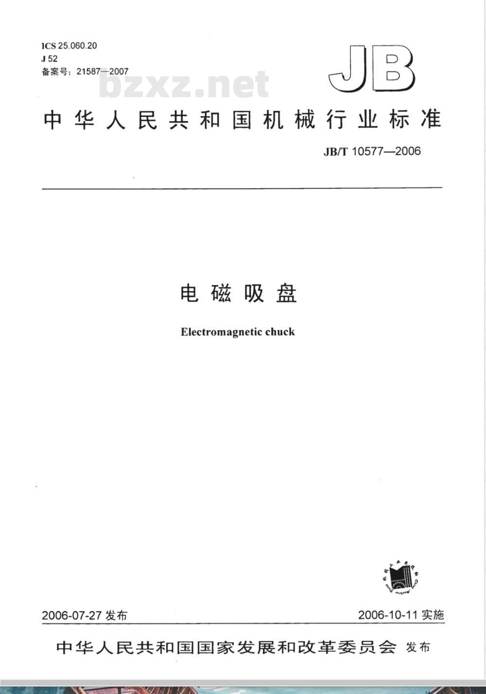 - JB/T 10577-2006 电磁吸盘