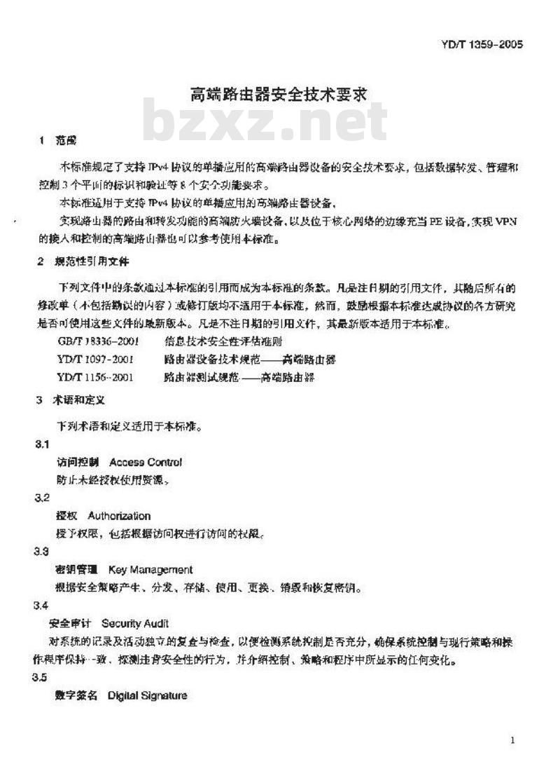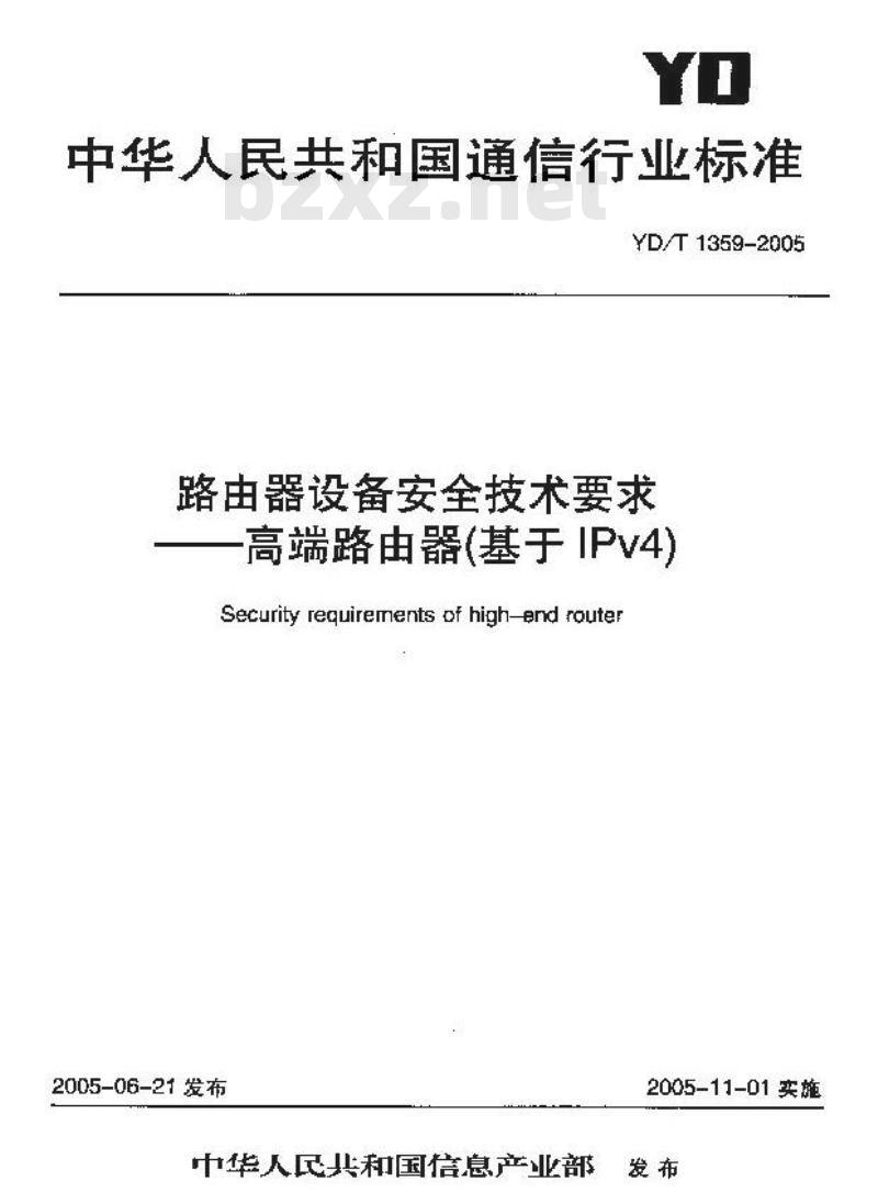 - YD/T 1359-2005 路由器设备安全技术要求——高端路由器(基于IPv4)