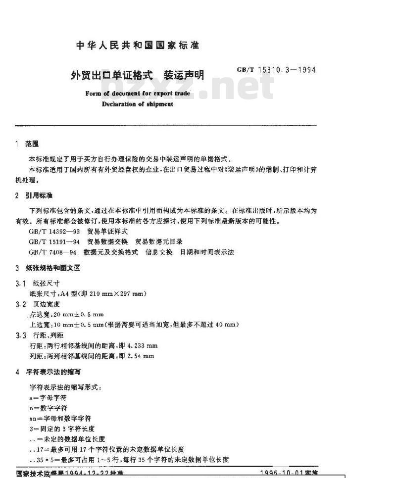 GB/T15191-94贸易数据交换贸易数携元目录GB/T7408一94,数据元及交换格式信息交换日期和时间表示法3纸张规格和图文区
