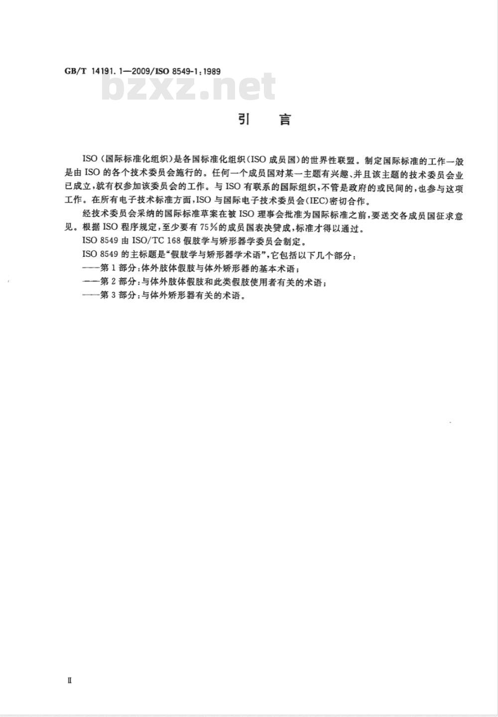ISO(国际标准化组织)是各国标准化组织(ISO成员国)的世界性联盟。制定国际标准的工作一般是由ISO的各个技术委员会施行的。任何一个成员国对某一主题有兴趣、并且该主题的技术委员会业已成立,就有权参加该委员会的工作。与ISO有联系的国际组织,不管是政府的或民间的,也参与这项工作。在所有电子技术标准方面,ISO与国际电子技术委员会(IEC)密切合作。经技术委员会采纳的国际标准草案在被ISO理事会批准为国际标准之前,要送交各成员国征求意见。根据ISO程序规定,至少要有75%的成员国表决赞成,标准才得以通过。ISO8549由ISO/TC168假肢学与矫形器学委员会制定。ISO8549的主标题是“假肢学与矫形器学术语”,它包括以下几个部分:第1部分:体外肢体假肢与体外矫形器的基本术语;—第2部分:与体外肢体假肢和此类假肢使用者有关的术语;—一第3部分:与体外矫形器有关的术语。I