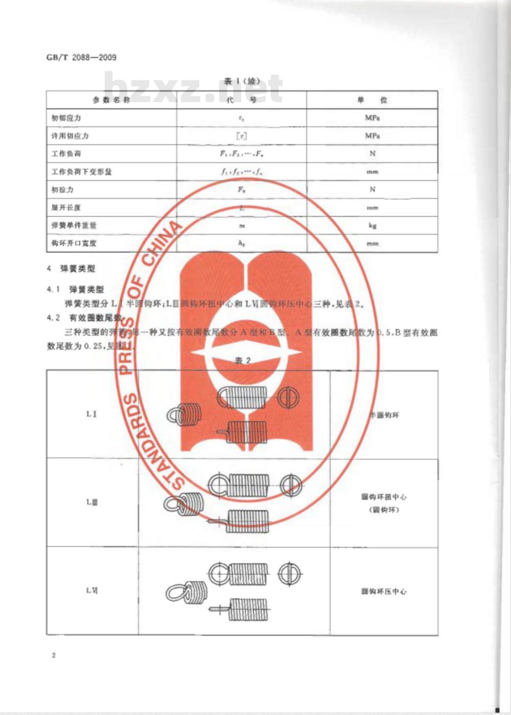 - GB/T 2088-2009 普通圆柱螺旋拉伸弹簧尺寸及参数