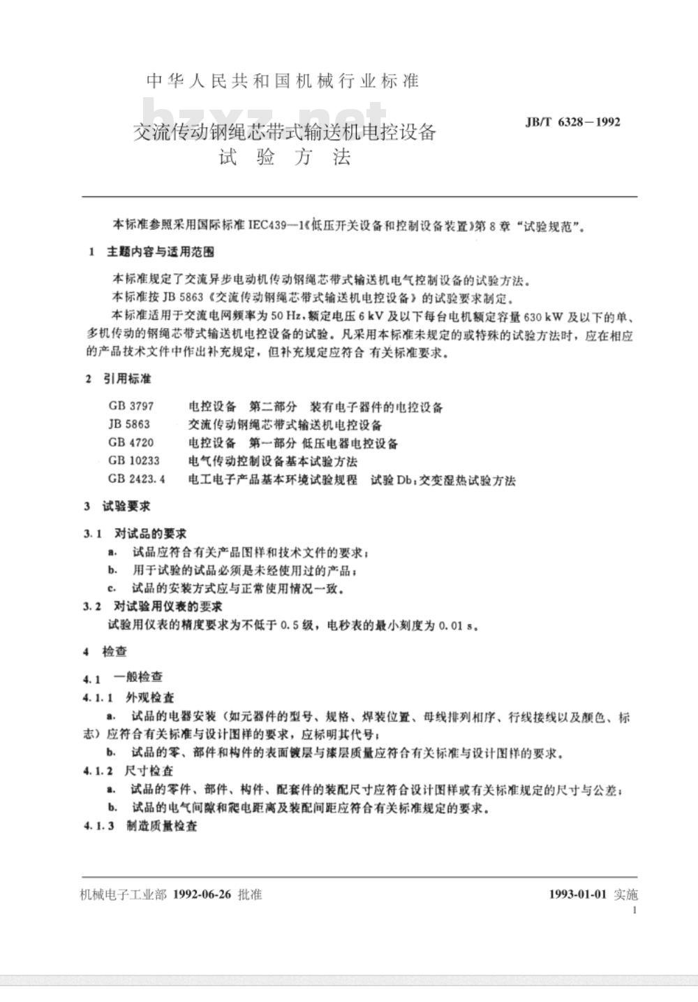 - JB/T 6328-1992 交流传动钢绳芯带式输送机电控设备 试验方法